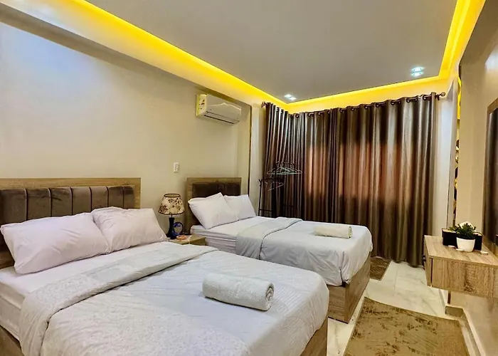 The Spiritual Apartment Pyramids View Cairo hotel is situated in the Giza district of Cairo, around 25 minutes' walk from the Giza Necropolis and features 80 rooms with views of the mountain. The guest house in Cairo offers currency exchange and a lift.